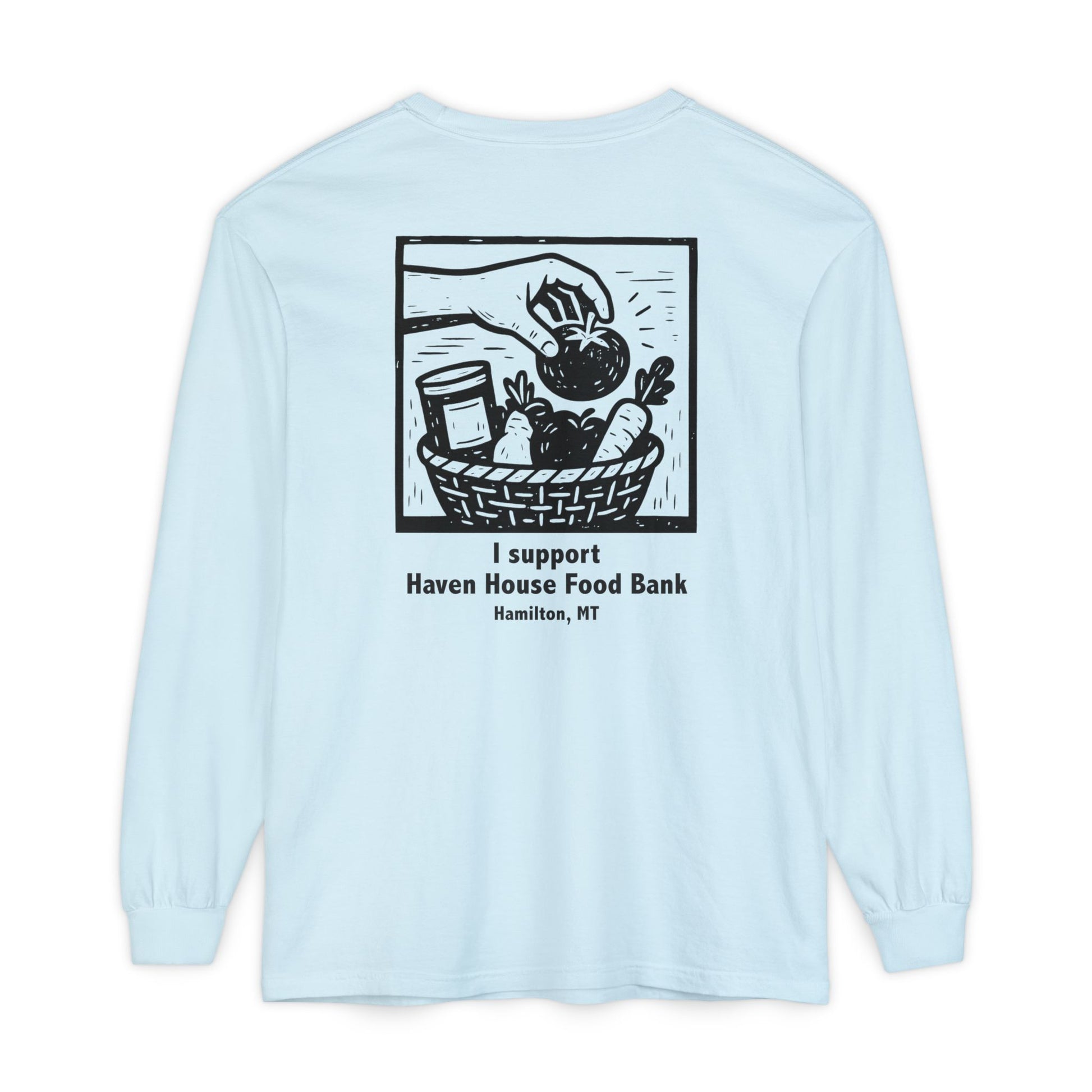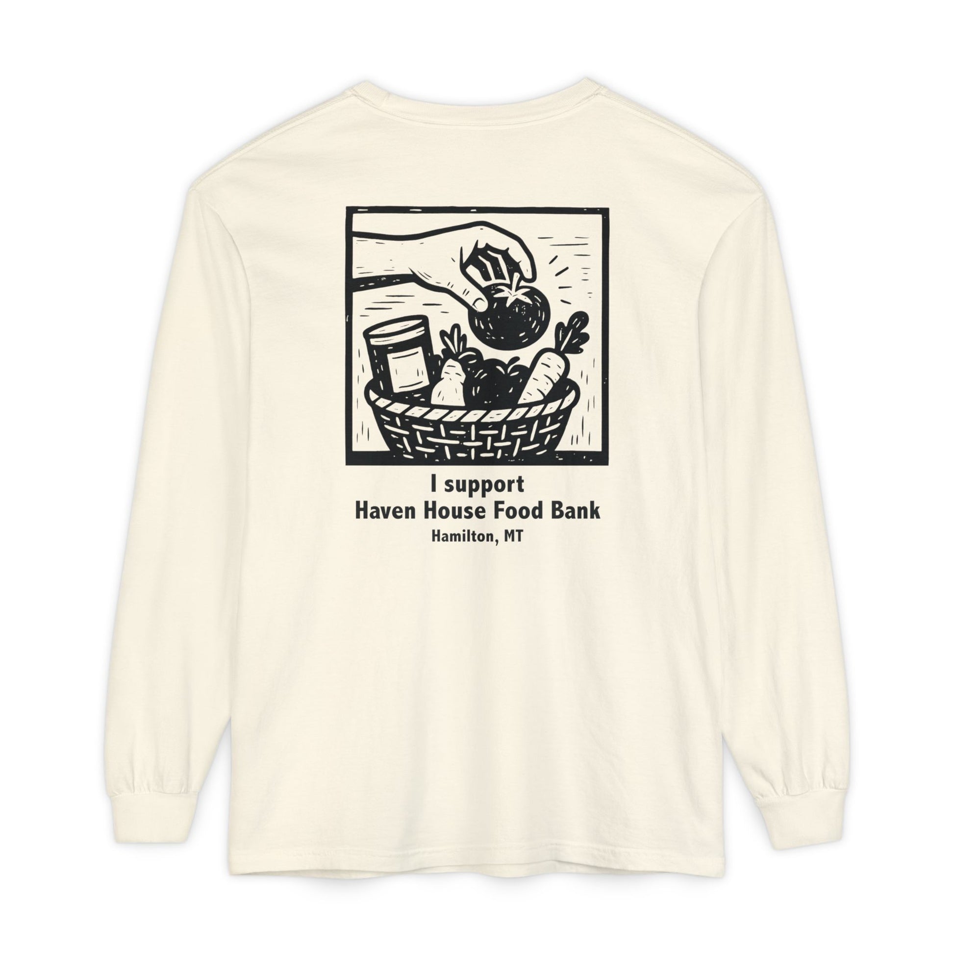I support Haven House Food Bank – for all who enter, long sleeve tee