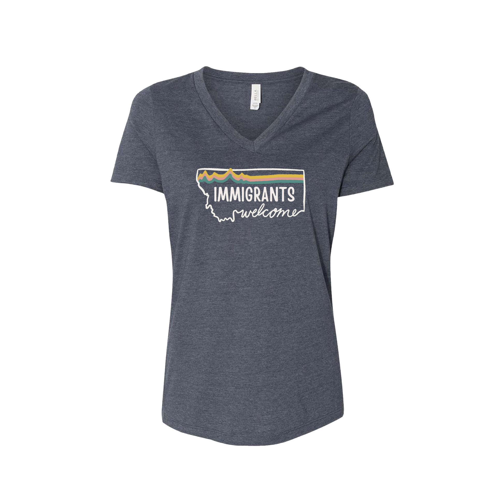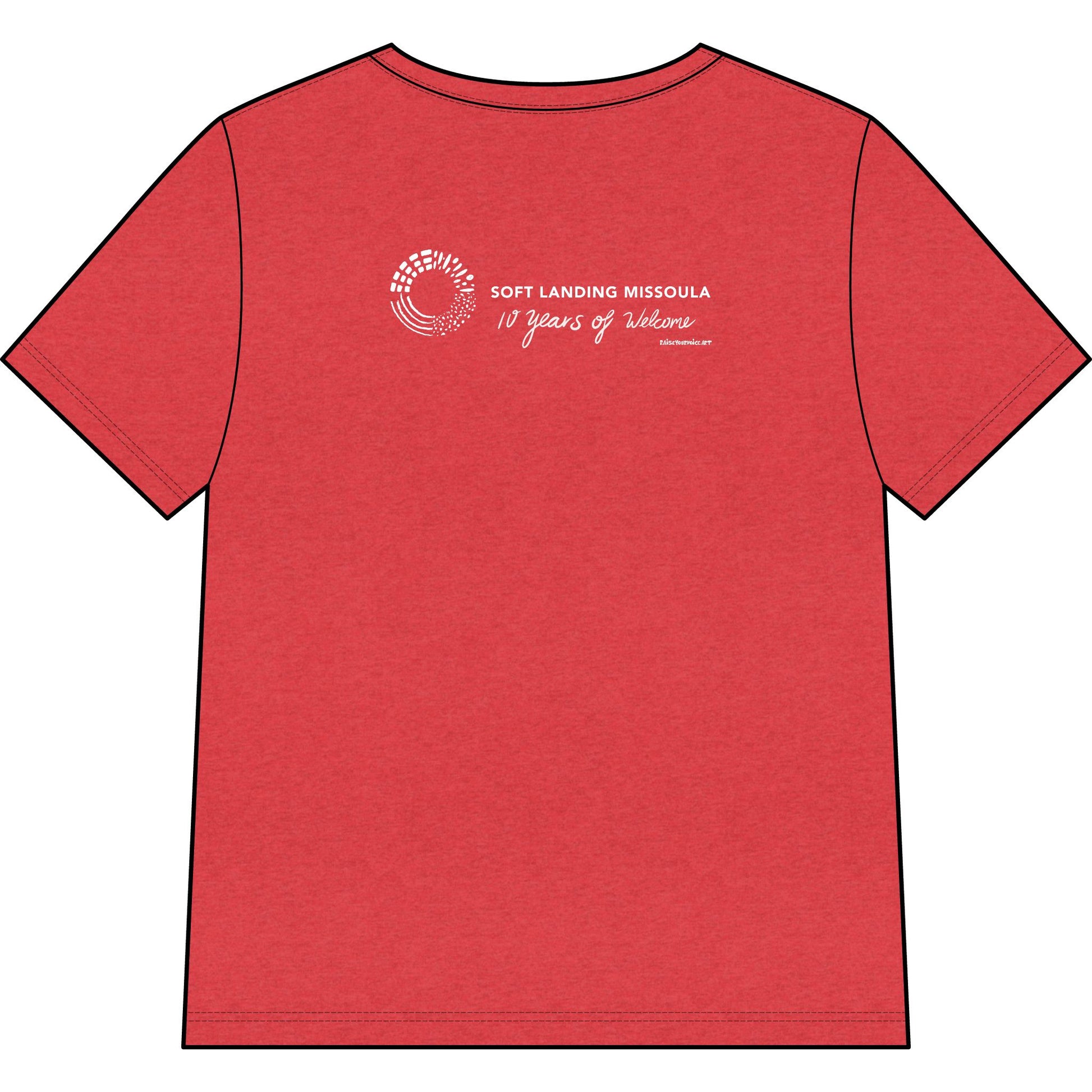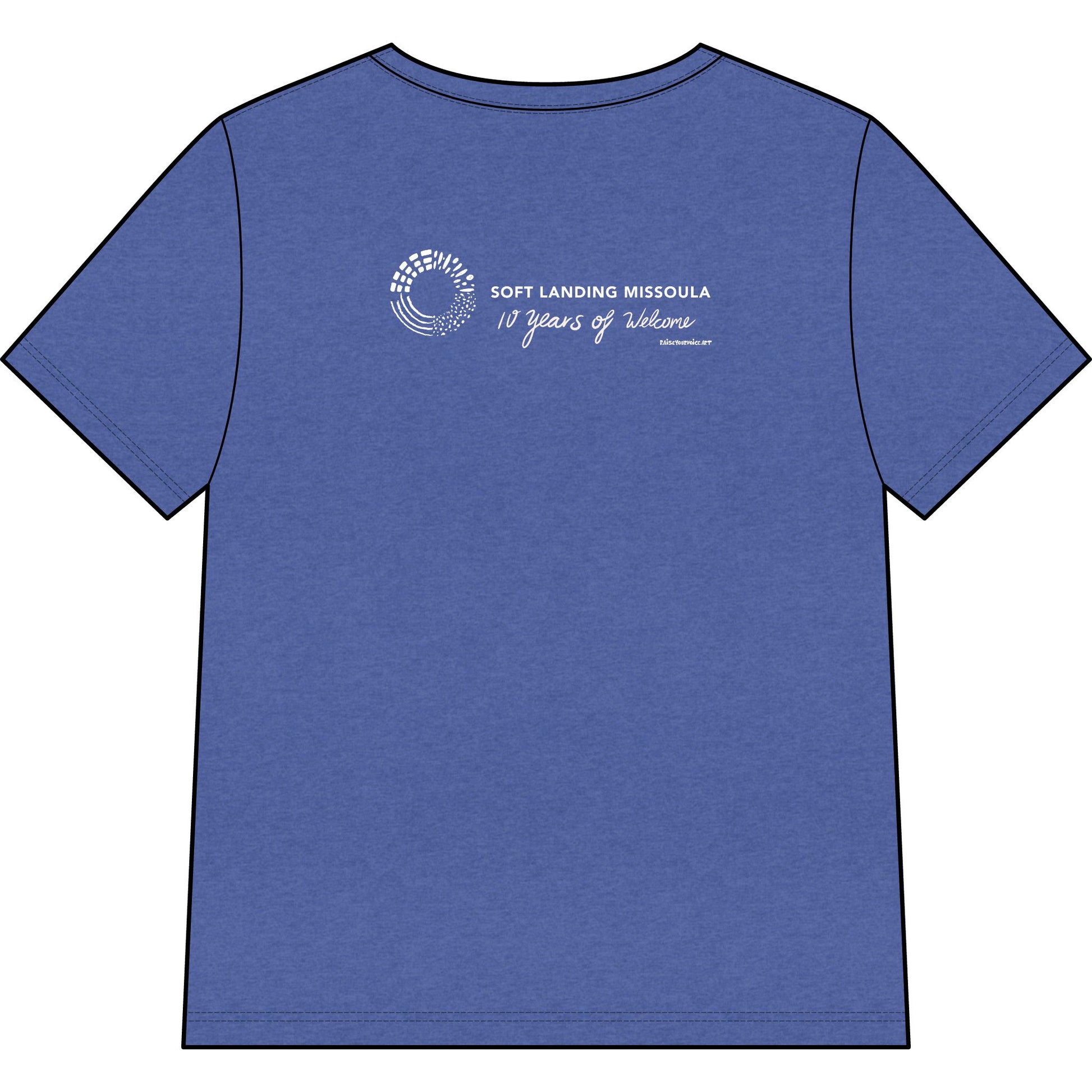 Soft Landing Missoula is a community-based nonprofit committed to working with refugee and immigrant families as they build new lives in Missoula. They invest in the long welcome, celebrate milestones and culture, and create opportunities to share experiences as a way to build a community where everyone can thrive. Commemorating their 10 year anniversary, this tee symbolizes Montana's historic tradition of welcoming immagrants to the Big Sky.