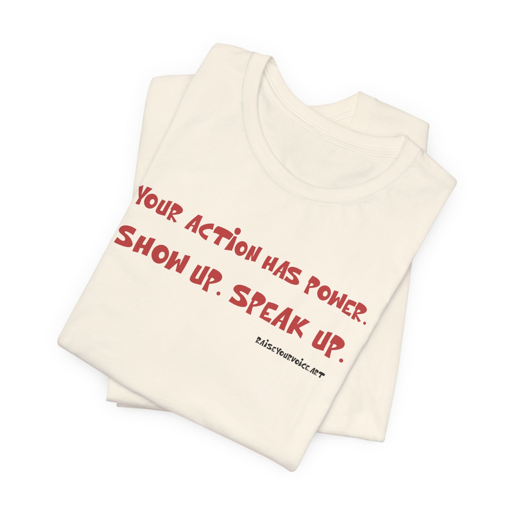Your Action Has Power. Show up. Speak up. Unisex tee